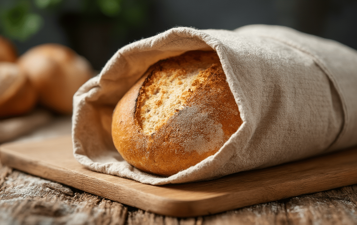 Baumwolle oder Leinen sind ideale Materialien für Brotfrischhaltebeutel, da sie strapazierfähig und atmungsaktiv sind.